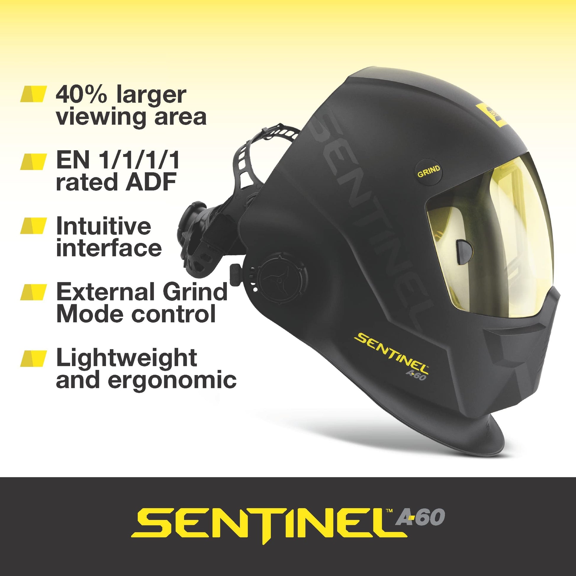 ESAB® Sentinel™ A60 Welding Helme | Black Low-Profile Design, High Impact Resistance Nylon, Large Viewing Area