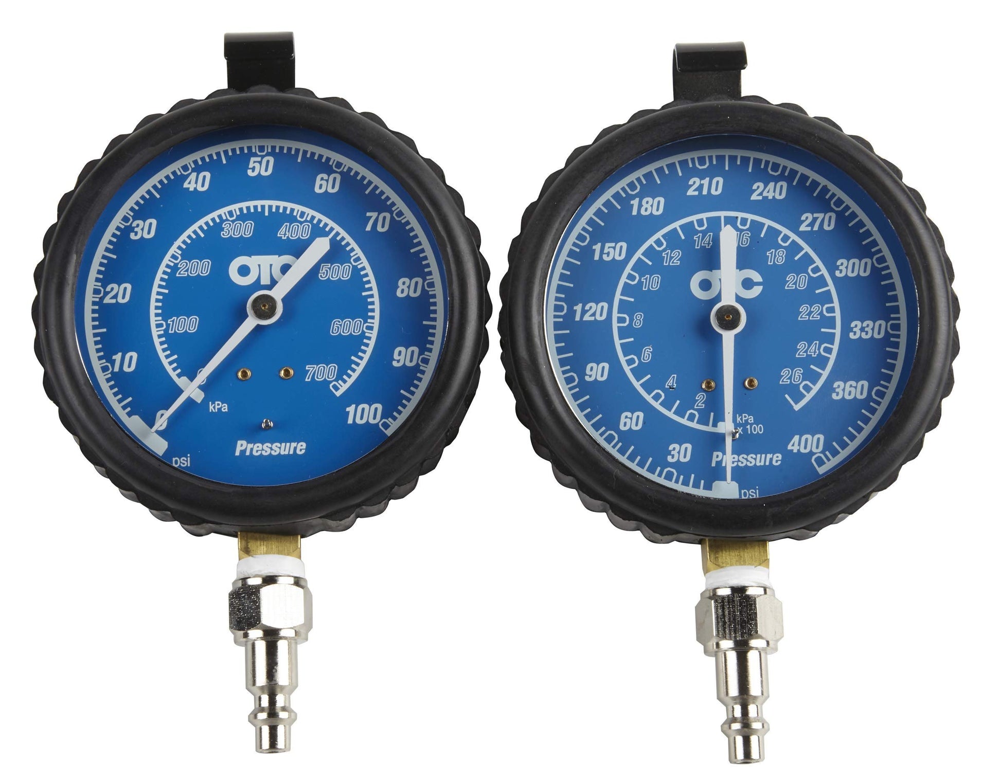 Included high (0-400 psi/0-2800 kPa) and low (0-100 psi/0-700 kPa) pressure gauges allow for testing on both transmissions and engines